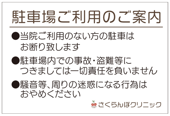 駐車場内での事故・盗難等につきましては一切責任を負いません
